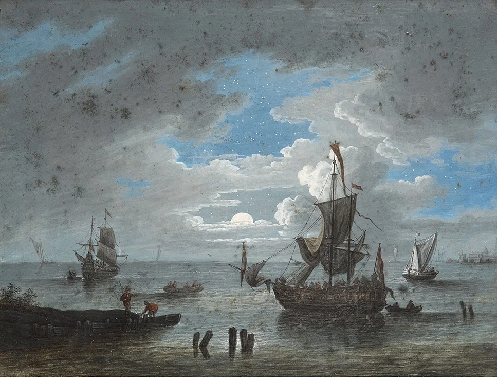 Pair of landscapes, nocturne in the Moonlight and a Shipwreck